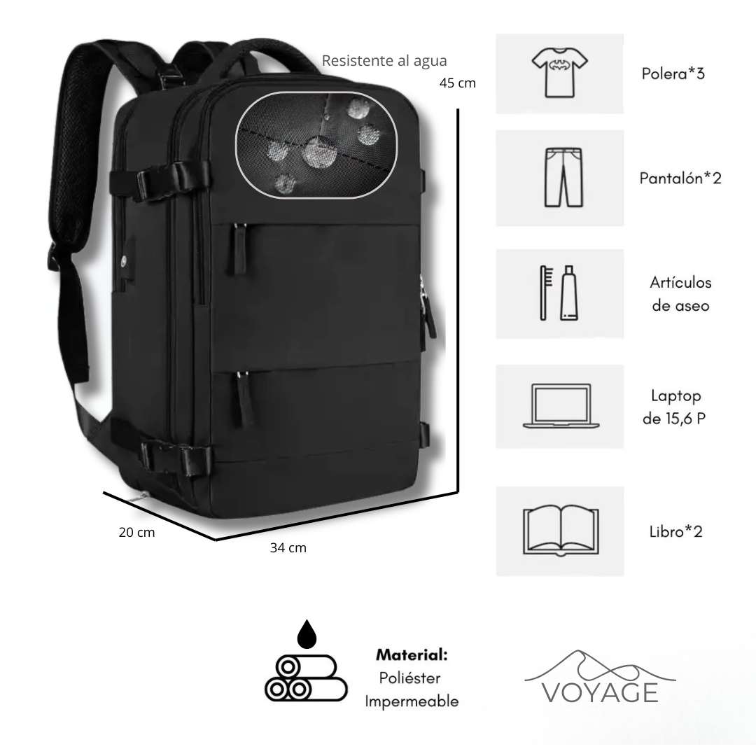 Ahora tú puedes llevar esta mochila Voyage en cabina como artículo personal y ahorrarte la espera en el aeropuerto y dinero en tu pasaje, llevando todo lo que necesitas para disfrutar de tu viaje como un winner. Esta estupenda mochila de gran capacidad puede acomodar tus pertenencias de manera fácil, cómoda y segura.
